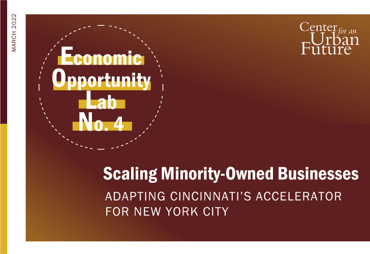 Scaling Minority-Owned Businesses: Adapting Cincinnati’s Accelerator for NYCThe fourth edition of Economic Opportunity Lab, CUF's series spotlighting innovative policies from other cities and states that are helping to create a more inclusive economy, profiles Cincinnati's Minority Business Accelerator. If replicated in New York, it could help small businesses grow and contribute to a more equitable economy for the long term.