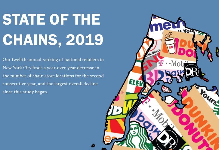 State of the Chains, 2019Our twelfth annual ranking of national retailers in New York City finds a year-over-year decrease in the number of chain store locations for the second consecutive year, and the largest overall decline since this study began.