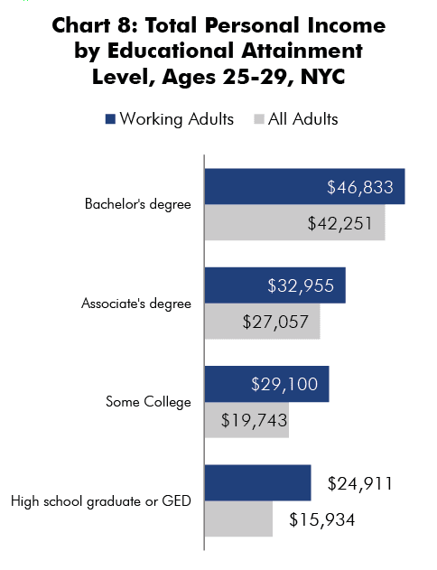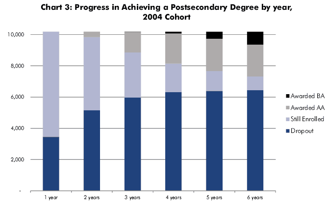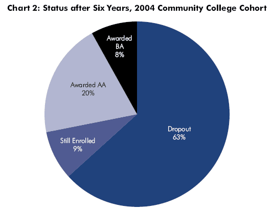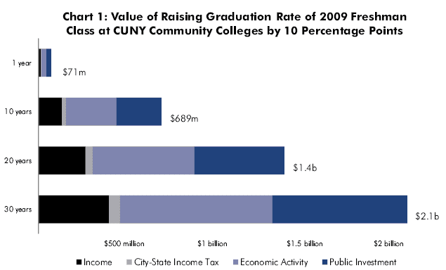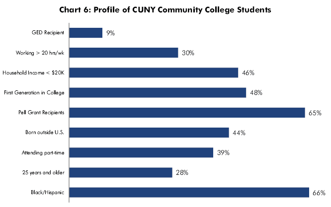 Selected charts and graphs from the Center for an Urban Future's November 2011 report on NYC's community colleges. The report found that community colleges are crucial platforms for economic mobility in today's knowledge economy, but showed that too few of those enrolled in these institutions actually graduate.