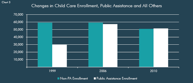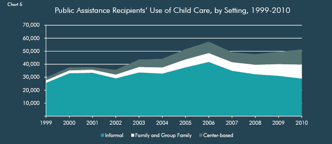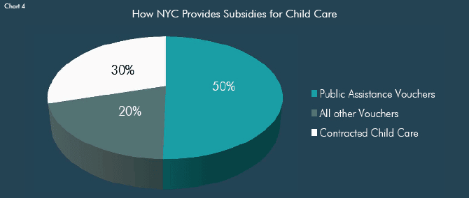 Selected charts and graphs from the Center for an Urban Future's January 2011 report which found that the supply of subsidized child care in NYC has slipped in recent years even as affordable child care has become increasingly critical for low-income parents to get and hold jobs or complete a postsecondary degree.