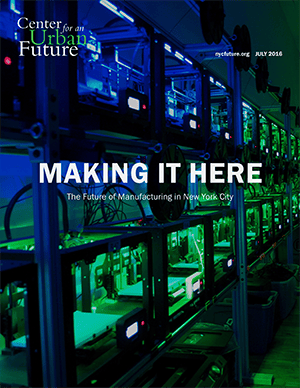 Most recently, an August 2016 New York Daily News op-ed co-authored by CUF Executive Director Jonathan Bowles stated that, “the next plank of the mayor’s inequality agenda should be a strategy to create middle-class jobs.” The op-ed, in addition to CUF’s July 2016 report Making It Here: The Future of Manufacturing in New York City, recommended supporting modern manufacturing to increase job growth. The op-ed also advocated moving beyond manufacturing by building new pipelines into the fast-growing creative and tech sectors, which haven’t always been seen as middle class industries. Both ideas are key parts of the de Blasio administration’s job creation plan, which aims to support the creation of 20,000 new jobs in the industrial and manufacturing sector in the next decade and an additional 30,000 jobs in the tech sector.