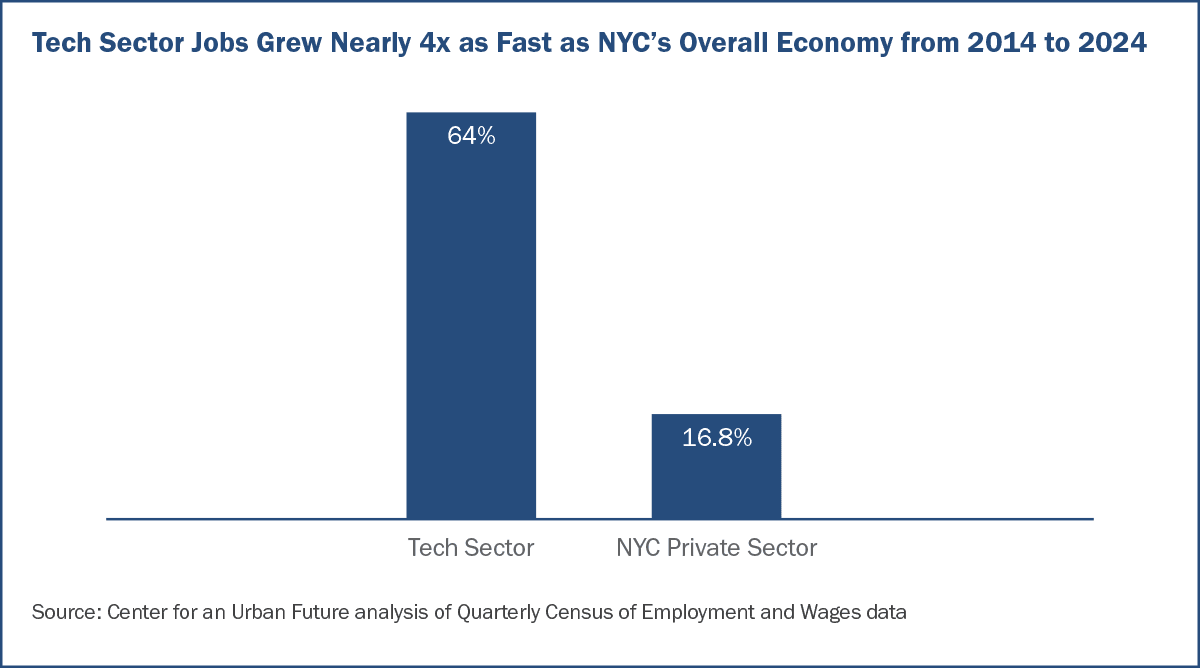 New York has the opportunity to overcome these and other challenges to build a larger, more sustainable, and more inclusive tech ecosystem. But it will require renewed support from city leaders.