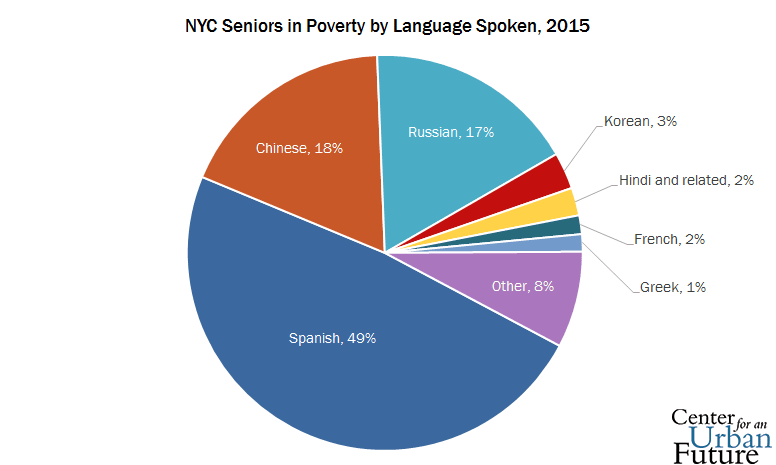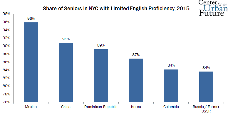 The rich diversity of New York’s senior population reflects the city’s long history as a beacon to immigrants from around the world. But this diversity has significant implications for the way senior services are delivered. As a group, immigrant seniors are 1.5 times as likely as native-born seniors to be poor, and almost two out of three speak English less than very well. Immigrant seniors and their families are less likely than native-born seniors to receive critical social support services, and the nonprofit organizations that serve immigrant seniors tend to be smaller and less well-funded than those that serve the general senior population.