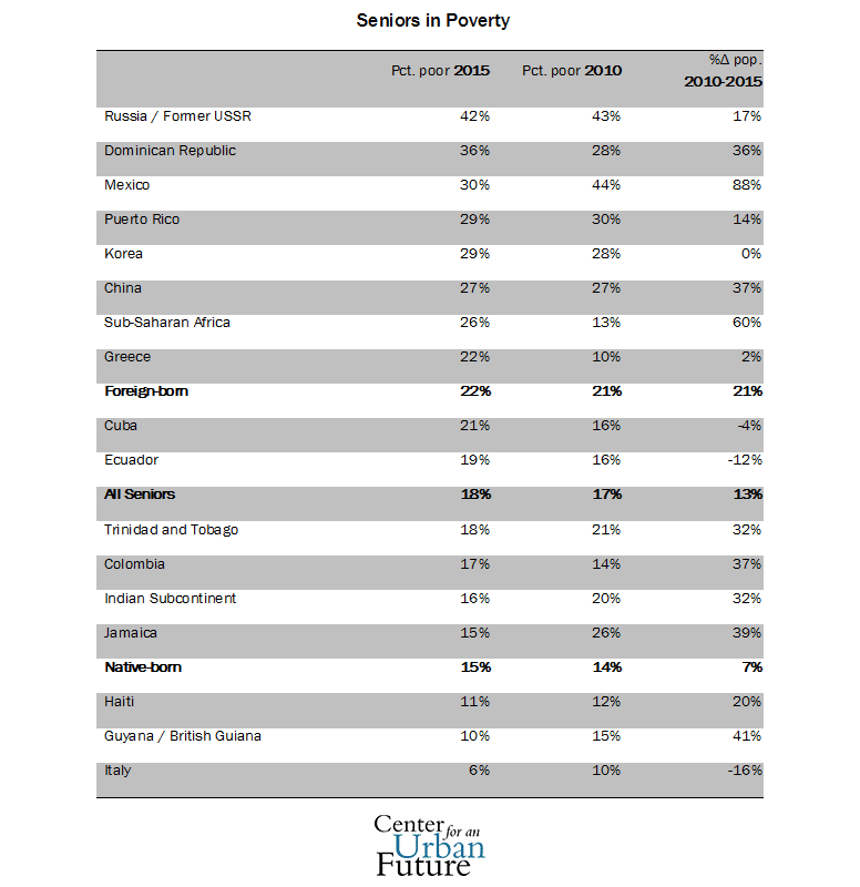 - Seniors from Russia and the former Soviet bloc experience a poverty rate of 42 percent—the highest of any group.