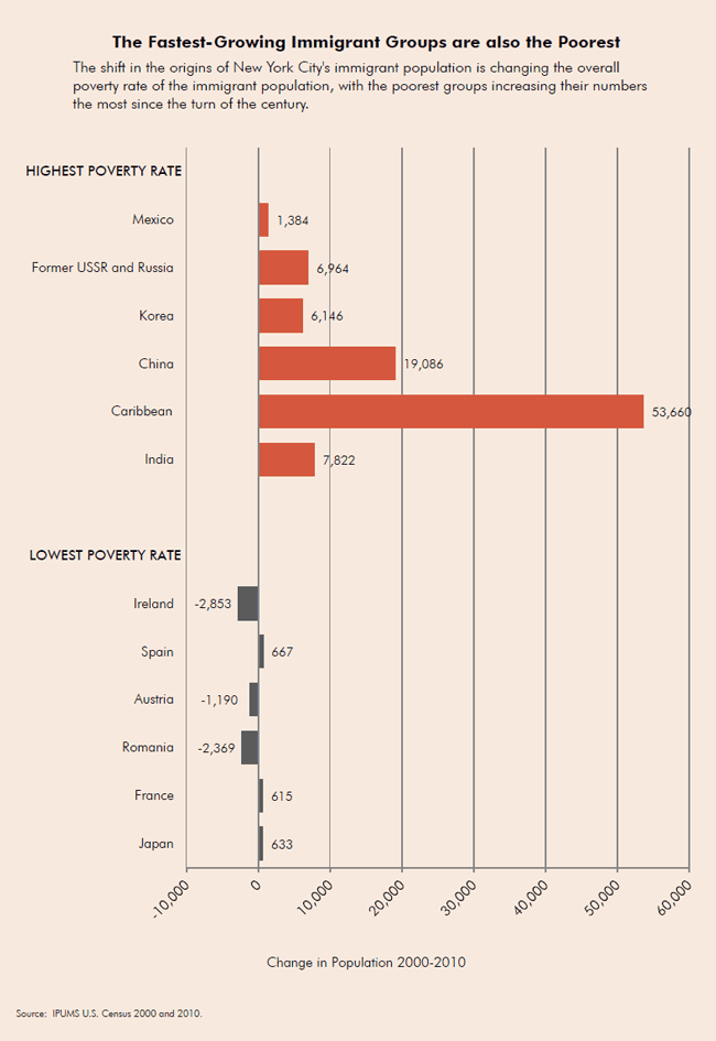 Alarmingly, this discrepancy is likely to grow in the years ahead, as the immigrant groups with the fastest growing populations of seniors are also among the poorest. The number of seniors from European countries with lower levels of poverty has actually fallen 10 percent since the beginning of the decade, while the four fastest growing groups—Chinese, Indian, Caribbean and Korean immigrants—all have poverty rates of at least 25 percent. Among Mexican immigrants, another fast-growing group, an astounding 50 percent are below the federal poverty line.